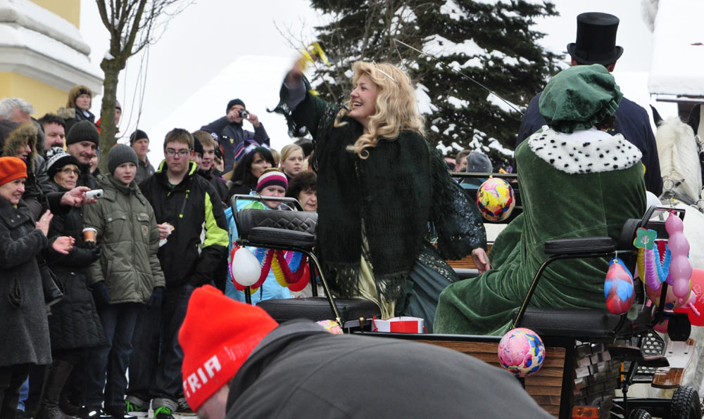 Der alle 5 Jahre stattfindende Faschingszug begann um ca. 13.30 Uhr und wurde vom Prinzenpaar Andi & Daniela (Andreas Wollendorfer und Daniela Karl) angeführt. Die Musikkapellen aus den umliegenden Orten sorgten für gute Stimmung bei den doch recht eisigen Temperaturen.