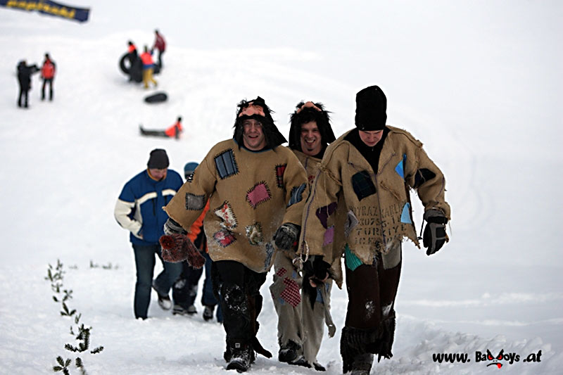 Mit sehr hohen Geschwindigkeit sausten die kostümierten Akteure den Hang hinunter ...