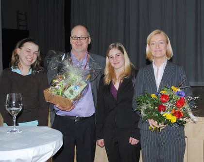 Maturantinnen Julia Öttl (links) und Christine Kaltenhauser, Projektbetreuer Christian Ruckerbauer, Dr. Johanna Rachinger (rechts)