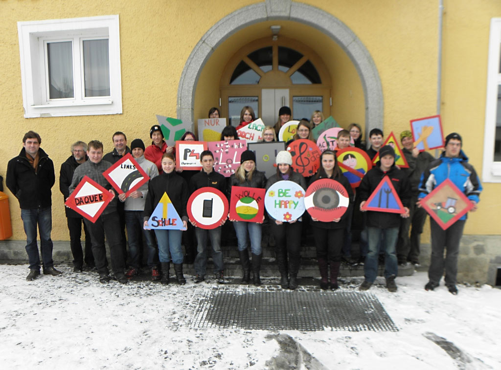 Die Idee hinter „Zeichen setzten“ ist folgende: Die Ulrichsberger SchülerInnen wurden in einem von Simone Traunmüller (Ethnologin) gehaltenem Vortrag an das Thema „Zeichen, Logos und Symbole“ herangeführt, um einen Überblick zu bekommen wie Zeichen im öffentlichen Raum funktionieren, also wie sie gestaltet sind, welche Inhalte sie transportieren und wozu sie eingesetzt werden. Im unmittelbaren Anschluss daran wurde von den SchülerInnen mit dem Entwerfen von eigenen Zeichen begonnen, mit dem Ziel, später eine eigene Verkehrstafel zu gestalten.