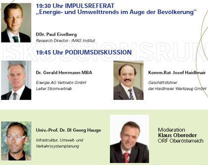 Moderator Klaus Obereder diskutiert mit Experten die Energie- und Umweltproblematik im Hinblick