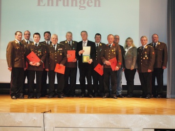 Bez. Kdt. OBR Nößlböck übereichte an Minister Mitterlehner die Florianiplakette als Dank für seine Bemühungen im Bezirksfeuerwehrwesen und ehrte auch verdiente Kameraden, so wurden HAW Christian Pilsl - HAW Manfred Lanzerstorfer – HAW Helmut Ratzesberger mit der Bezirksmedaille in Bronze, sowie HAW Josef Froschauer mit der Bezirksmedaille in Gold ausgezeichnet. OBR Alois Wengler aus Braunau und BR Günter Unterholzer aus Pyrawang erhielten für ihr Engagement beim Landes Wasserbewerb in Niederranna ebenfalls die silberne Bezirksmedaille. Das Bundesverdienstkreuz dritter Stufe erhielt Leopold Mayrhofer von der FF Hofkirchen für seine Verdienste als Bewerter auf Bezirks und Landesebene und seine Tätigkeit als Kdt. Stellvertreter ( 28 Jahre ). Alle recht herzliche Gratulation.