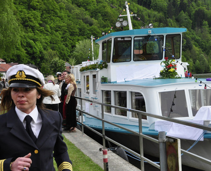 OBERMÜHL - NIEDERKAPPEL. Am 8. Mai fand in Obermühl die Schiffstaufe der MS Lilofee im Beisein von Bezirktshauptfrau Dr. Wilbirg Mitterlehner und Lukas Dikany, dem Prior des Stiftes Schlägl statt. Unter den weiteren Ehrengästen befanden sich natürlich auch die Bürgermeister der angrenzenden Gemeinden. Sehr viele Gäste und Anrainer nahmen die Einladung zur Schiffstaufe bei idealem Wetter an. Nach dem offiziellen Akt der Schiffstaufe wurden die Gäste noch zu einer Gratis-Runde mit der MS Lilofee eingeladen.