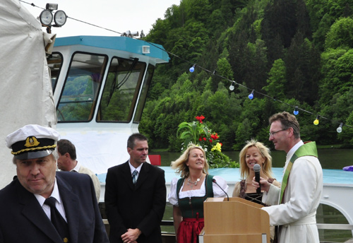 Die "Schiffsweihe" übernahm Lukas Dikany, Prior des Stiftes Schlägl. Kapitän Bloch bereitet sich bereits auf seine erste Ausfahrt mit der MS Lilofee vor ...