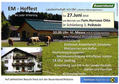 PEILSTEIN: Am Sonntag den 27. Juni 2010 findet in Peilstein ein Hoffest statt. Das Fest beginnt um 10h Uhr mit einer hl. Messe und anschließendem Frühschoppen.