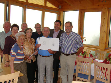 Das Fest der Diamanthochzeit wurde mit einem Familienausflug in die Mühlviertler Nachbargemeinden eingeleitet. Bei der abendlichen Feier gesellten sich Gratulanten vom Hofkirchner Seniorenbund und der Marktgemeinde Hofkirchen i.M. dazu. SB-Obmann Erich Moser, sein Stellvertreter Richard Bauer sowie Johann Mayrhofer und Bgm. Martin Raab überbrachten Glückwünsche und Geschenke für das Jubelpaar. Über ein Ehrengeschenk von Landeshauptmann Dr. Josef Pühringer, das Bgm. Martin Raab samt einer Ehrenurkunde überbrachte, freute sich das Jubelpaar ganz besonders.