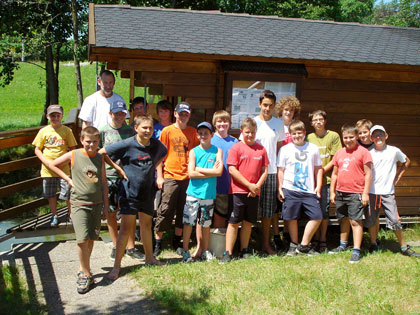Sämtliche Teilnehmer am diesjährigen Fischercamp für Jungfischer mit Fritz Winkler vom Fischereivereinsvorstand (3.v.l.)