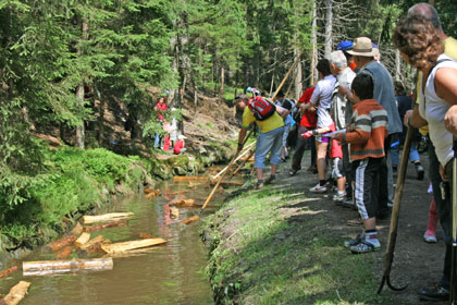AIGEN/SCHLÄGL: Bei der vorletzten Scheiterschwemme der Saison, dürfen sich die Besucher wieder auf ein tolles Fest freuen. Wilfried und seine Musikanten sorgen für Stimmung und die musikalische Umrahmung der Veranstaltung. Es besteht die Möglichkeit, mit dem Bummelzug zur Schwemme zu fahren. Wer mitfahren möchte, sollte sich allerdings rechtzeitig beim Tourismusverband Böhmerwald +43 (0)7281/20065 anmelden. Alle anderen kommen über eine 45-minütige Wanderung ausgehend von Oberhaag zum Schwemmkanal. Dieser war in der Vergangenheit eine große Erleichterung für die Arbeiter, die das Holz aus den abgelegenen Waldstücken bringen mussten. Doch auch die Arbeit des Schwemmpersonals war hart. Davon können sich die Besucher der Vorführung selbst überzeugen.