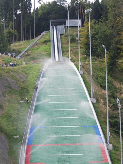 Aus den Rückmeldungen der Springer im Einspringen erhält der Schanzenbauer wichtige Erkenntnisse für die Feineinstellung. Neigungswinkel und Länge des Schanzentisches können nachjustiert werden.