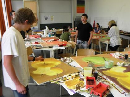 Schritt für Schritt wurden unter seiner Anleitung dünne Farbschichten übereinandergelegt, wobei sich jeder Schüler auf jeweils zwei Komplementärfarben beschränkte. Besonderes Augenmerk galt der Licht- und Schattengebung und der Komposition der Bilder.