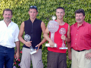 Turnierleiter Alois Binder, Thomas Unholzer, Turniersieger Jürgen Kapl und Turniersponsor Hans Huber