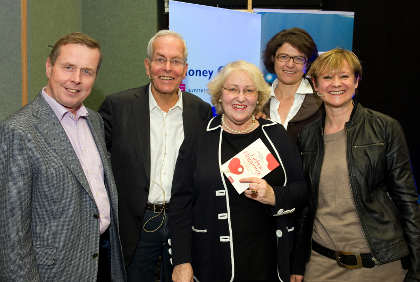 vl. Bürgermeister Franz Hofer, die Referenten Mathias Jung und Julia Onken, Fragestellerin Christine Haiden und Organisatorin Roswitha Öhler