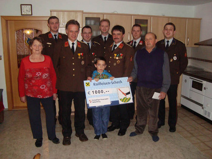 Die Freiwillige Feuerwehr Nebelberg nahm dies zum Anlass, um kurzerhand ein Wintersonnwendfeuer zu veranstalten. Der Reingewinn dieser Veranstaltung wurde aufgebessert und dem achtjährigen Halbwaisen konnte der namhafte Betrag in der Höhe von 1.000,-- Euro überreicht werden.