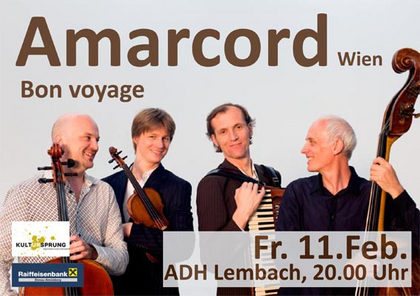 LEMBACH (31.01.2011) - 10 Jahre besteht das Ensemble Amarcord jetzt. Zweimal, 2003 und 2004 gastierten sie mit durchschlagendem Erfolg in Putzleinsdorf. Mit ungewöhnlicher Besetzung, gekonnten Arrangements und großem Spielwitz eroberten sie in den 10 Jahren die Herzen ihres Publikums.