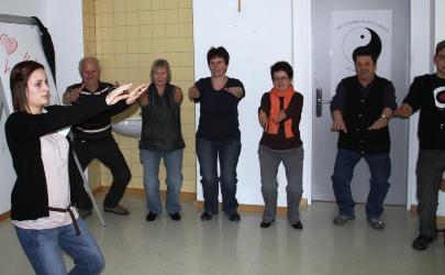 Beim anschließenden Bewegungsteil wurden die rund 250 TeilnehmerInnen in 10 Gruppen aufgeteilt um verschiedene Bewegungs- und Entspannungstechniken ausprobieren zu können. Die Schüler zeigten unter anderem Qi Gong-Übungen, Entspannungstechniken nach Jacobson oder Kräftigungsübungen mit dem Theraband. Damit dem Üben zu Hause oder am Arbeitsplatz nichts mehr im Wege steht, erhielten alle MitarbeiterInnen Übungsanleitungen und ein Theraband.