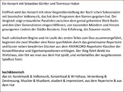 bach&bosnisch - Sebastian Gürtler & Tommaso Huber Samstag, 9. April 2011 - 20 Uhr