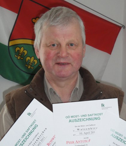 PFARRKIRCHEN: Äußerst erfolgreich verlief die 21. Waizenkirchner Most- und Saftkost am 9. und 10. April 2011 für Anton und Roswitha Peer aus Grettenbach. Sie erhielten für alle 5 eingereichten Moste (ein Apfelmost, ein Birnenmost und drei Mischlingsmoste) den 1. Preis zuerkannt. Damit konnten sie von allen Teilnehmern die meisten Siegesplatzierungen erreichen und ließen viele namhafte Mosterzeuger hinter sich.Aber nicht nur beim Most ist das Ehepaar Peer erfolgreich: Bei der Spezialmesse für Direktvermarkter „Ab Hof“ in Wieselburg im Februar 2011 bekamen sie für ihren Apfelbrand den 3. Preis und für ihren Zwetschkenbrand den 2. Preis zuerkannt.