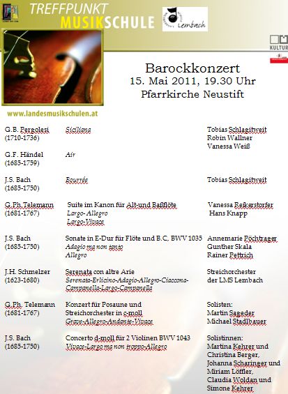 Einladung zum Konzert mit Schülern der Landesmusikschule Lembach