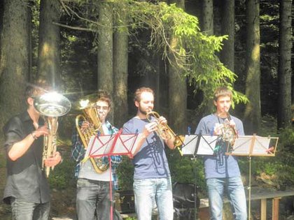 Die SchülerInnen und LehrerInnen der Musikschule Lembach boten ein buntes Programm. Zu Beginn spielen in den Gasthöfen Barth und Froschauer eine Big Band, sowie die Tasten und Drums. Während der Wanderung gesellten sich immer mehr Wanderer dazu, um den wilden Violinen beim Pflanzenlabyrinth und dem Wald-Brass-Ensemble beim Steinlabyrinth zu lauschen. Der Wald als Konzertsaal, die Natur als Kulisse – ein außergewöhnliches Erlebnis für Musiker und Wanderer.