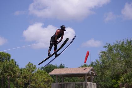Manfred Hintringer (mehrfacher Europa- und Weltmeister im Cableski) holte drei Goldene im Springen, Trick und der Kombination
