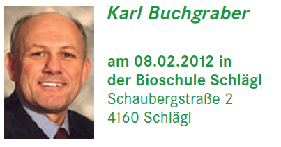 - 08.02.2012 ... Dr. Karl Buchgraber - „Grünlandexperte“, Leitung des Institutes für Pflanzenbau und Bioschule Schlägl Kulturlandschaft, LFZ-Raumberg-Gumpenstein, www.raumberg-gumpenstein.at
