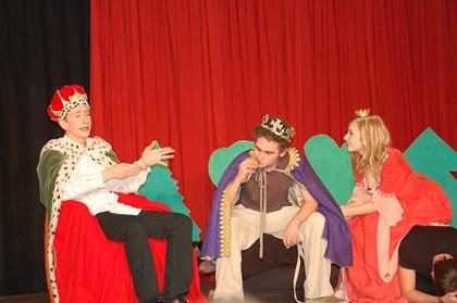 König, zukünftiger Prinz und Prinzessin im Stück "Gestiefelter Kater"