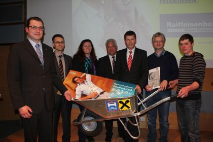 Die Raiffeisen Wohn-Experten mit den Gewinnern des Raiffeisen Wohnbau-Abends in der Wirtschaftskammer Rohrbach (v.li.): Christian Pernsteiner, Dominik Mittermayr, Gabriele Schaubmayr (Putzleinsdorf), Walter Springer, Direktor Mag. Ludwig Kapfer, Josef Panhuber (Rohrbach) und Markus Hain (Nebelberg).