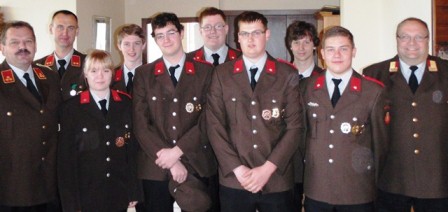Kommandant Hintringer bedankte sich für die zahlreiche Teilnahme und konnte mit Probefeuerwehrmann Altendorfer Stefan und Binder Roland zwei Quereinsteiger bei der FF Hofkirchen begrüßen. Er führte die Angelobung durch und nahm sie so offiziell in die Feuerwehr Hofkirchen auf. Es folgte noch die Beförderung aktiver junger Feuerwehrmitglieder.