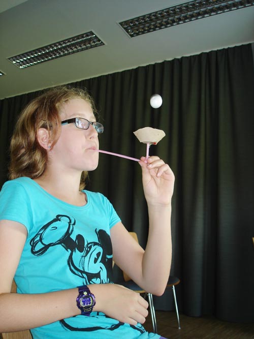 Nach diesen aufregenden Ereignissen landeten wir wohlbehalten wieder am Flughafen Hofkirchen und stärkten uns mit einem Eis. Danach testeten wir unseren Luftstrom mit dem selbstgebastelten „Flow Ball“.