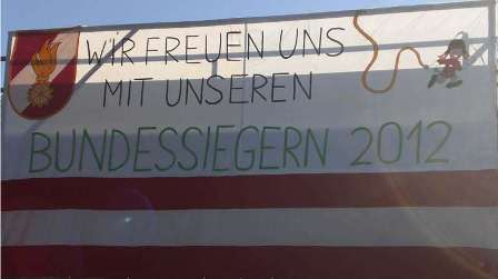 Bei der Ankunft zu Hause wurde die siegreiche Gruppe mit einem Transparent empfangen