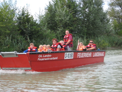 Eine Bootsfahrt auf der Donau in Landshaag ließen sich ca. 50 Kinder am 11.August 2012 nicht entgehen.