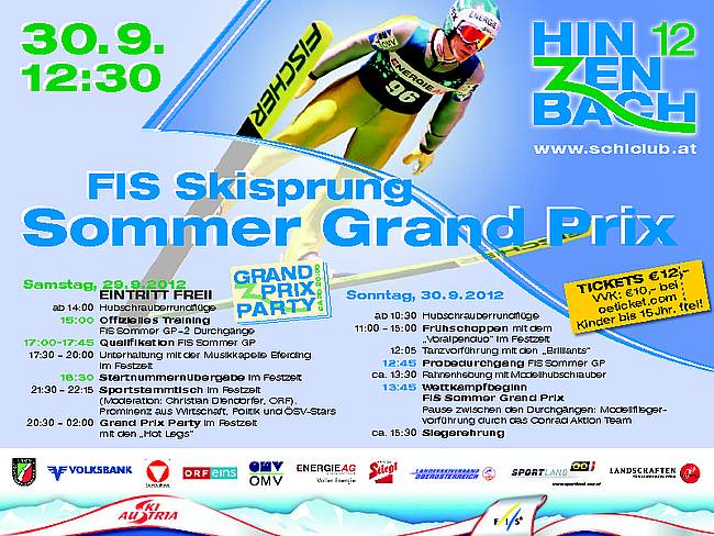 Auf der 100 m Schanze in Hinzenbach gastiert am Sonntag, 30. September 2012 der Skisprung Sommer Grand Prix.