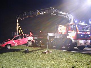 Bergung aus. Die verletzten Insassen waren zu diesem Zeitpunkt bereits versorgt und in das Landeskrankenhaus Rohrbach eingeliefert. Da beim Überschlag der Tank des VW-Passat leck schlug, musste zuerst der gesamte Tankinhalt unter Sicherstellung des Brandschutzes abgelassen werden, bevor das Fahrzeug mit dem Kranwagen geborgen werden konnte.