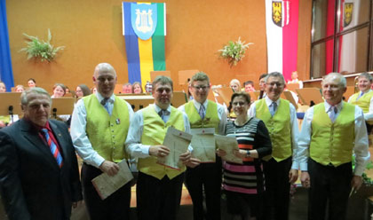 Natürlich gab es wie jedes Jahr auch ein paar Auszeichnungen zu vergeben, Stefan Eidenberger (Verdienstmedaille in Bronze für 15 Jahre aktive Mitarbeit im Musikverein), Roman Pühringer (Verdienstmedaille in Gold für 35 Jahre aktive Mitarbeit im Musikverein), Kurt Eder (Ehrenzeichen in Silber für 33 Jahre aktive Mitarbeit im Musikverein und einige Vorstandstätigkeiten), und für die charmante Moderatorin Renate Zalto die uns mit ihren Witz und Charm schon seit Jahren durch das abendliche Programm führte (Ehrennadel in Silber).