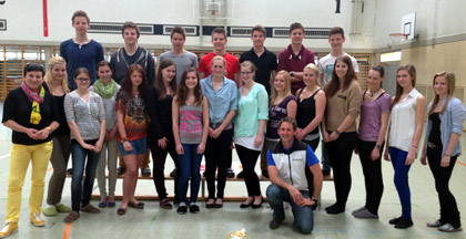 Vorne: Markus Teubner - Erste Reihe von links nach rechts: Prof. Mag. Elisabeth Mayrhauser, Lena Panzenböck, Jana Stockinger, Christina Fasching, Sophia Thiele, Marion Kneidinger, Florinda Balija, Katharina Lackinger, Raphaela Lorenz, Lena Kiesl, Sarah Schönberger, Sabrina Filz, Simone Altenhofer, Saskia Hartl, Marlene Resch - Zweite Reihe von links nach rechts: Peter Lorenz, Jakob Nömair, Andreas Bindeus, Philipp Aigner, Patrick Thaller, Markus Gahleitner, Tobias Gahleitner