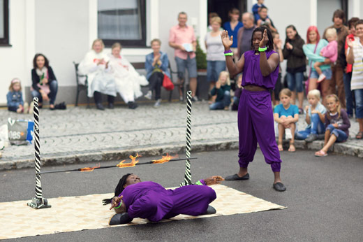 Begeisterte Besucher trafen auf begeisternde Straßenkünstler. Die Kulturgruppe Hofis präsentierte Artisten und Künstler aus aller Welt und bot ein Straßenkunstfestival auf hohem künstlerischem und artistischem Niveau.