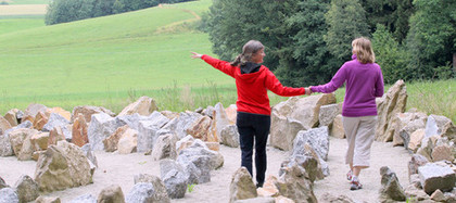 im Steinlabyrinth, beim Schlechtwetter im Stadel des ehem.GH Mairhofer