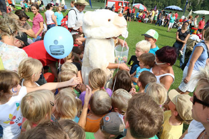 KLEINZELL: Basteln mit Naturmaterialien, Kinderschminken, schnittige Basteln mit Naturmaterialien, Kinderschminken, schnittige Feuerwehrbootfahrten, Pferdereiten, Knackerbraten und Stockbrot am Lagerfeuer, das kunterbunte Programm von Hokus Pokus Musikus, Hüpfburg, Geschicklichkeitsparcours und Riesenspiele und vieles, vieles mehr konnten Kinder mit ihren Eltern zum Nulltarif genießen. Das alles machte das Familiennnetzwerk Mühltal mit den Gemeinden St. Martin, Kirchberg, Kleinzell, Niederwaldkirchen, St. Ulrich, Neufelden und Altenfelden möglich. Obendrein konnten die Gäste - die weit über die Bezirksgrenzen hinaus ins Wikingerdorf strömten - zu einem stark ermäßigten Familienpreis mit dem Wikingerschiff die Donau befahren und die Kids den „Führerschein“ mit ferngesteuerten Mini-Traktoren erwerben. Luftballonstart und Brieftaubenstart waren einige der vielen Höhenpunkte beim inzwischen neunten „Familienfest auf der Donauwies’n“. Leiterin Roswitha Öhler: „Wir haben heuer unser großes Angebot nochmals erweitert. Die Familien genossen das besondere Ambiente im Wikingerdorf“. Zur Feier des Tages gestalteten die Besucher ein riesengroßes Transparent zum 10-Jahre-Jubiläum des Familiennetzwerkes.