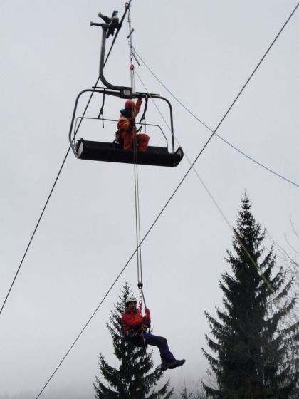 AIGEN: Es wurde die Evakuierung eines Sesselliftes am Hochficht geübt, um für den Ernstfall gerüstet zu sein.