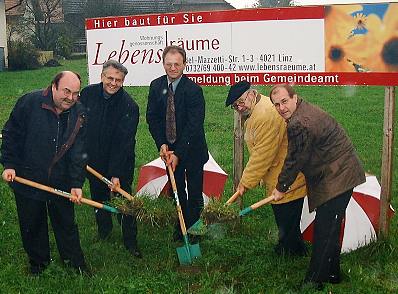 ST.ULRICH: Die Linzer Wohnungsgenossenschaft "Lebensräume" errichtet in St.Ulrich/Mkrs. eine Energiespar-Wohnanlage, bestehend aus zwei Wohnhäusern mit je 9 Wohnungen. Am 25.10.2001 erfolgte der Spatenstich für das erste Wohnhaus.