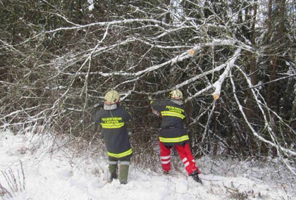 LACKEN: In der Nacht auf Sonntag, den 4. Jänner 2015, wurden wir gegen 2:30 Uhr von der Sirene geweckt, weil ein Baum den Schneemassen nicht mehr standhalten konnte und quer über die Mühllackener Straße B132 gestürzt war.