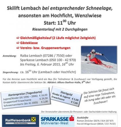 LEMBACH: Am Sonntag, 8. Februar 2015 finden die heurigen Lembacher Orts-Skimeisterschaften statt.