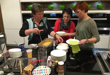 NEUSTIFT: Am Mittwoch, den 28. Jänner 2015 wurde unter der fachmännischen Anleitung von Fr. Anneliese Harner (Miele) in den Räumlichkeiten der Fa. Eilmannsberger (Rohrbach) mit dem Dampfgarer gekocht. Roswitha Fesel, Vroni und Julia Zeller - Foto: Gesunde Gemeinde Neustift