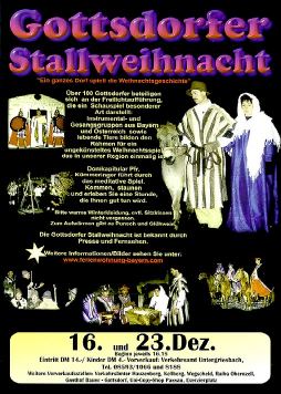 100 Mitwirkende gestalten auch 2001 wieder die Gottsdorfer Stallweihnacht. Seit Mitte Oktober proben die Darsteller, Sänger und Musikanten für ihre Auftritte am 16. und 23. Dezember jeweils um 16.15 Uhr.