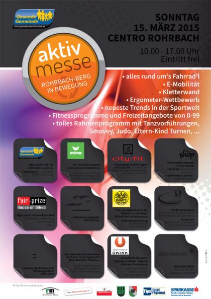 Am Sonntag, 15.03.2015, von 10:00 bis 17:00 Uhr findet im Centro Rohrbach eine Aktiv Messe (Rohrbach-Berg in Bewegung) statt.