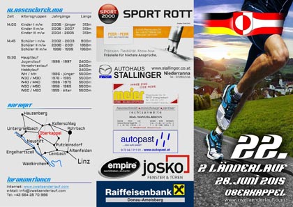 22. Zweiländerlauf nach einer 5-jährigen Pause wieder über die Bühne. Dieses Jahr sind zum ersten Mal Teamwertungen möglich! Informationen zum Streckenverlauf, Anmeldung, Laufplänen, Preisen und viele Bilder von den letzten Läufen gibt es unter