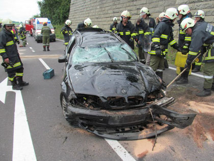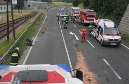 LACKEN: Am Nachmittag des 21. Juni 2015 wurden die beiden Feuerwehren Lacken und Herzogsdorf zu einem schweren Verkehrsunfall mit eingeklemmter Person auf der Rohrbacher Bundesstraße (B127) bei Gerling alarmiert. Gegen 13:25 Uhr hatte sich ein junger Lenker mit seinem Fahrzeug überschlagen und ist danach am Dach zu liegen gekomen. Der Mann war mit schweren Verletzungen in seinem Wagen eingeklemmt.