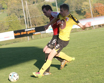Hofkirchen mußte auf die verletzten Kevin Mairhofer und Zsolt Szalkai verzichten. Dafür rückte Christoph Reiter wieder in die Startelf. Beide Teams konnten und trauten sich nicht so recht ihre Karten offen zu legen. Es entwickelte sich in der Anfangsphase eine behäbiges Spiel mit vielen kleinen Fehlern. Doch in der 12. Minute tankte sich Dominik Stöbich auf der Seite durch und spielte den Ball in die Mitte der gegnerischen Strafraumgrenze. Dort wurde der Ball ideal für Oliver Witti serviert, der trocken zum 1:0 abschloß. Der Führungstreffer nahm leider nicht die Anspannung der Gastgeber. Der Spielaufbau wirkte verkrampft, was aber auch an den Gästen lag. Tschechenlegionär Igor Nitransky war Schaltstelle seines Teams und trieb seine Leute an. Doch eine wirkliche Chance wollte für die Gäste nicht herausschauen. So blieb es bei der knappen Halbzeitführung der Hofkirchner.