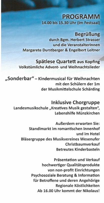 Weihnachtsbasar ... mit sozialem Mehrwert Am Sonntag, 6. Dezember findet von 11:00 Uhr bis 17:00 Uhr ein Weihnachtsbasar im Seminarhotel Wesenufer statt.