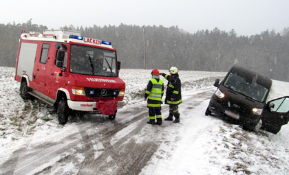 LACKEN: Das Fahrzeug eines Paketdienstes kam aufgrund der winterlichen Fahrverhältnisse von der Fahrbahn ab und drohte umzustürzen. Der Lenker wurde dabei unbestimmten Grades verletzt.